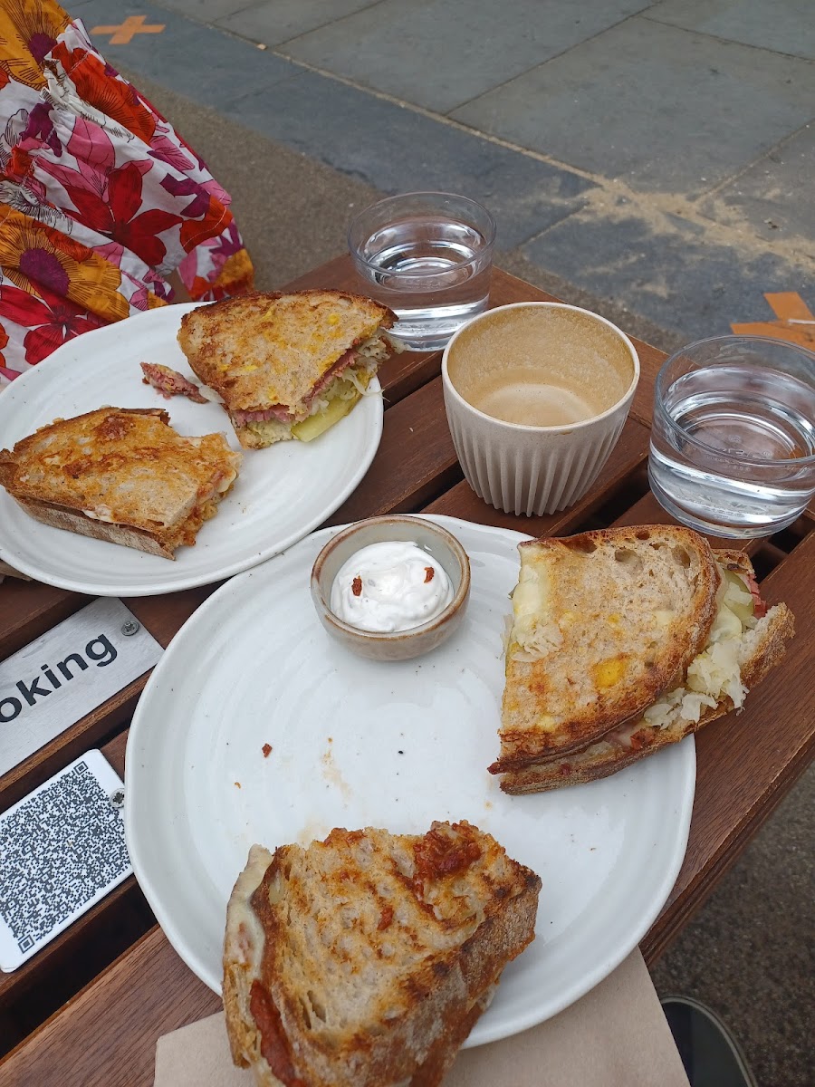 A lovely cafe with really tasty toasties! I had the Ruben, which had delicious salt beef and tangy sauerkraut and pickles. The cafe is small with limited seating but there's a nice atmosphere inside. The staff are friendly as well and service was great.